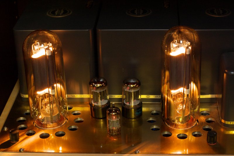 音の感じは,非常にクリアでクッキリとした明解な音です。EL-34 シングルと聴き比べますと,EL-34 シングルのアンプはピアノのソロを静かに聞く場合には大変良い素性を持っていますが,音量が大きくなると明らかに音質が曇りがちになります。また,全体にこじんまりした感じの傾向を持ちます。211 はこれが無く,音量が上がっても破綻しません。これはおそらく EL-34 側が 20dB の負帰還をかけていることも影響していると思われます。図体の大きさからもっとパワフルな押しの強さを感じるかと思いましたが,そういうタイプではなく,非常に透明な音で,弦やピアノのソロと相性が良いようです。と同時に,ソースの質が気になるようになりました。元々の録音がひどいソースが多いこと... SACD も結構ですが,現在の録音で CDDA の16 bit 帯域をキチンと使い切っているものはどれだけあるのでしょうか。